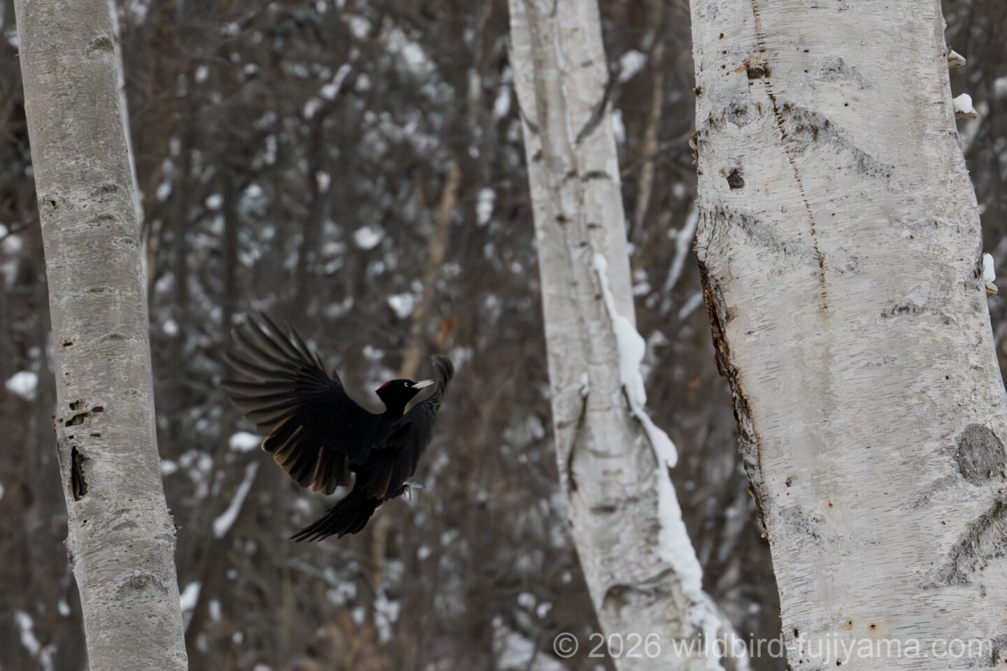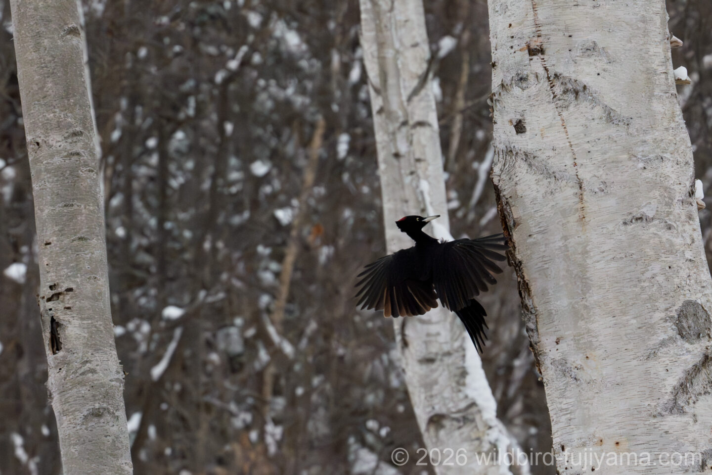 棒になった足に喝を入れながらやってきたクマゲラ♀の巣入りスポット。チャンスは1回のみ失敗は許されない状況でしたが何とか撮れました。2枚目が個人的にはベストショットですね。2日目のメインイベントが何とか撮れたのでホッとしたのもつかの間、駐車場までの帰り道は長くきつかったです。