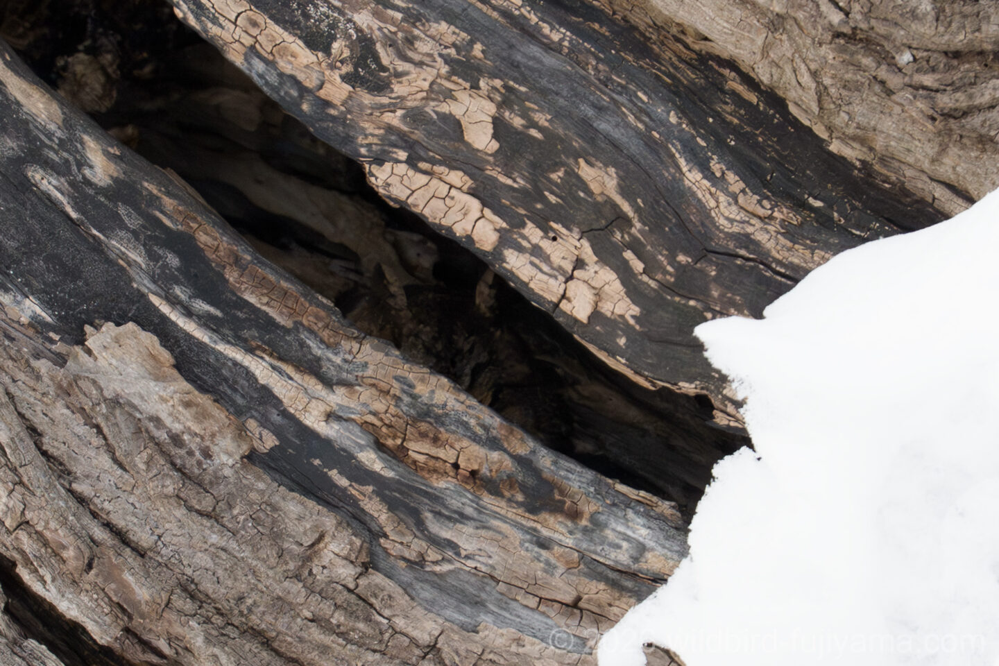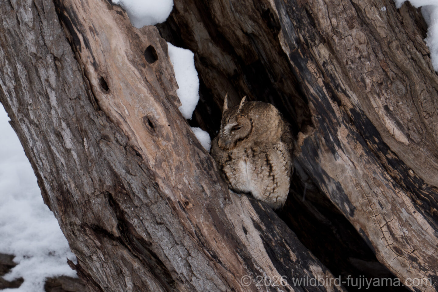到着早々ウソの群れに遭遇し♂を撮りましたが、飛んだ後に群れの中にベニヒワの♂♀もいたと聞かされちょっと凹みました。その後、巣穴を掘ってるクマゲラ♂がいて流石北海道!と感動しました(笑)。散歩中の方に教えて頂いたオオコノハズク(樹洞中央に頭が見えてます)は、2時間ほど粘りましたが、やはり出てきませでした。日が傾き急に寒くなったので宿泊先に向かいました。