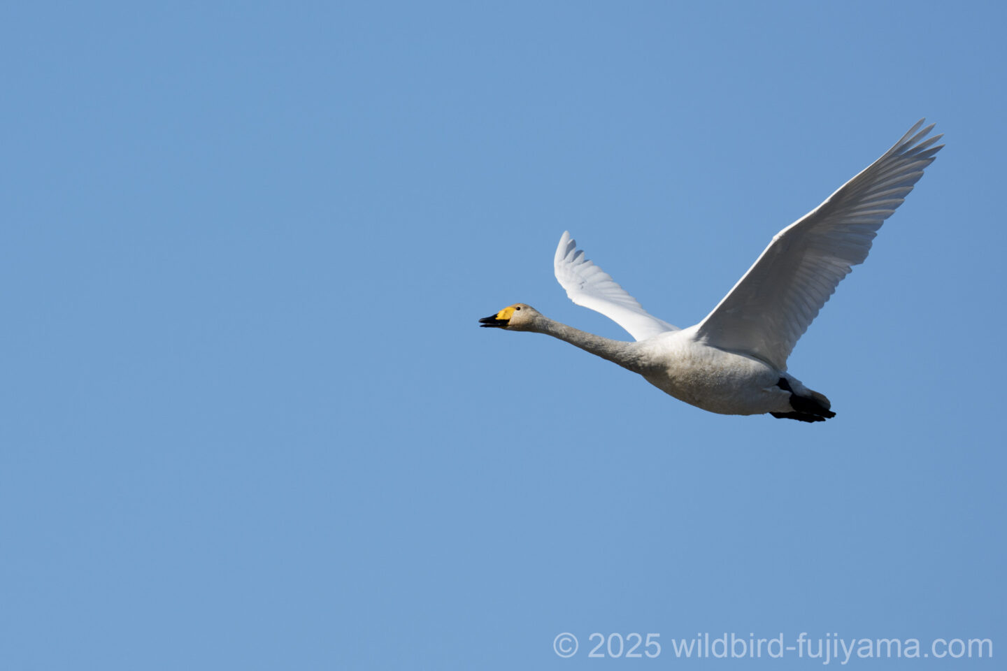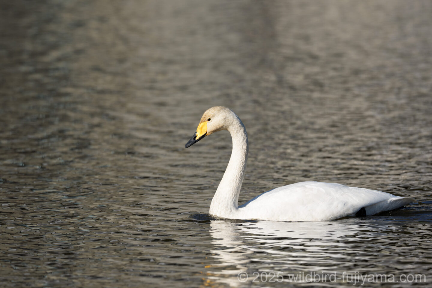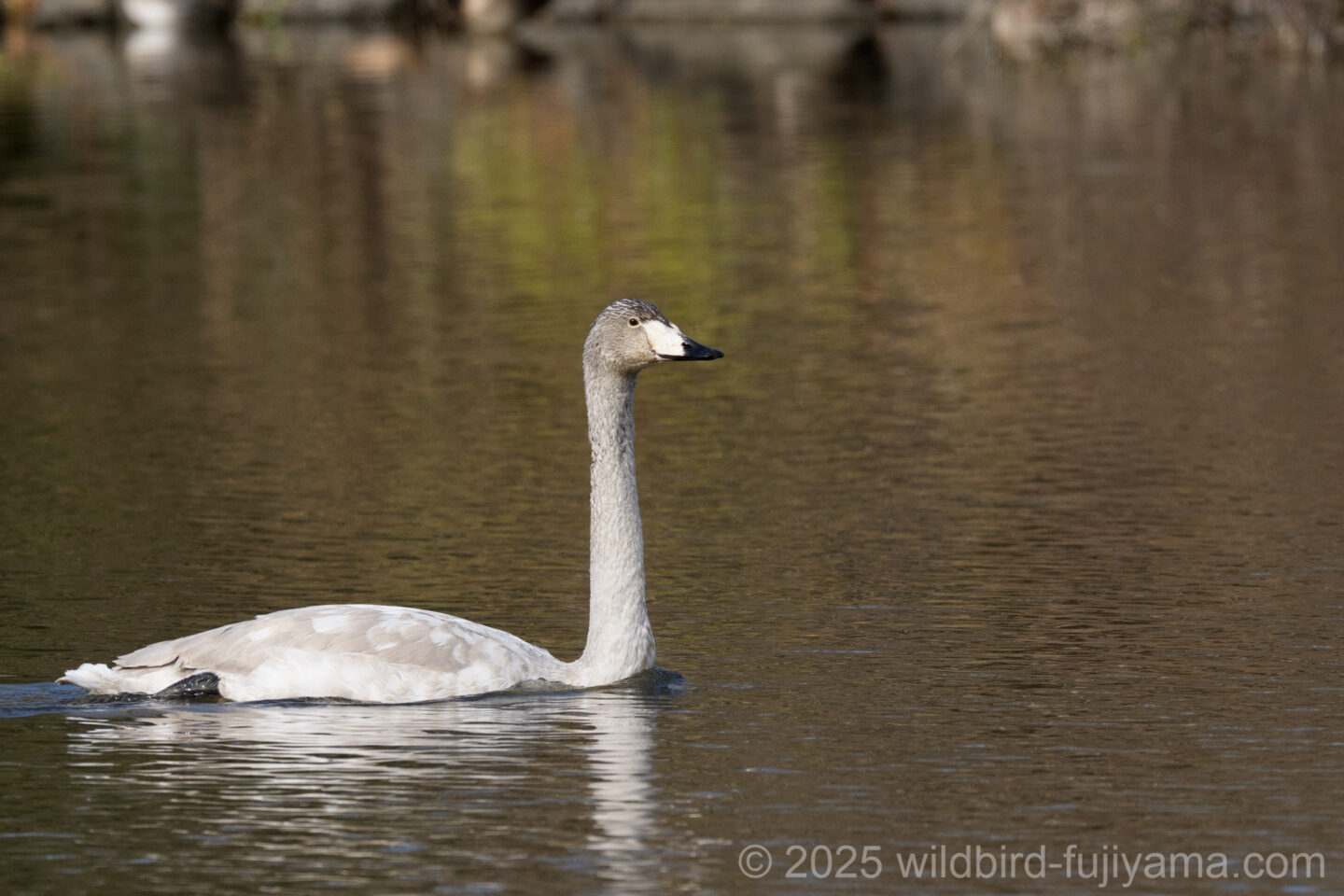 ハクチョウの成鳥2羽が飛んだ時には気が付きませんでしたが、3枚目の若が飛ばずに1羽残ってたので家族ではなくて迷子なのかも?