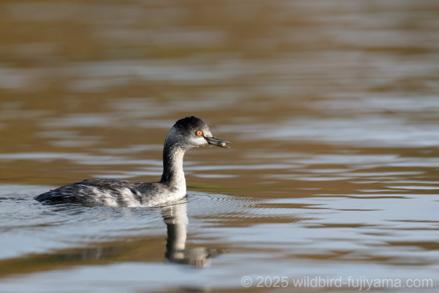 アオバトは2羽で行動してます。ハジロカイツブリは小魚を咥えてます。