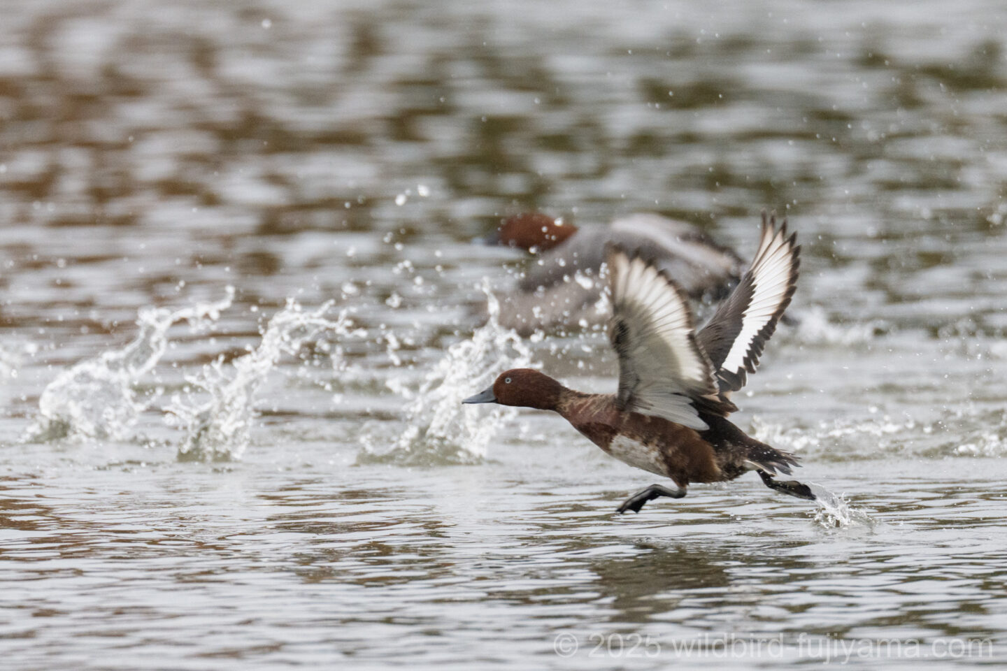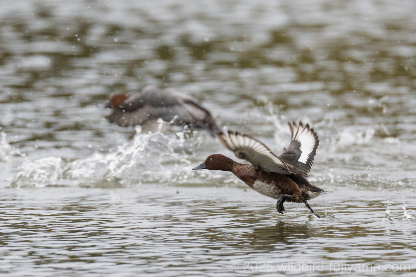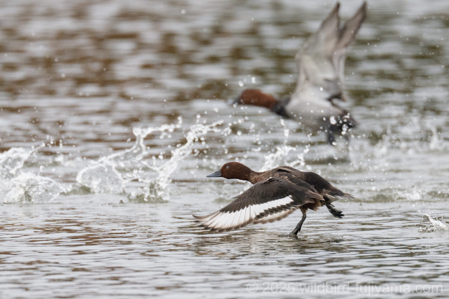 こんにちは。バードふじやまです。先日入ってすぐに抜けたメジロガモ♀が戻ってないか、ずっと気にしていたところ、今朝はメジロガモ♂1年目冬と思われる個体が入ってました。ところが撮影を始めてすぐに飛び出して行方不明に・・・。他には目の前に飛び出てきたジョウビタキ♀といつもの所に戻っていたハジロカイツブリを撮りました。