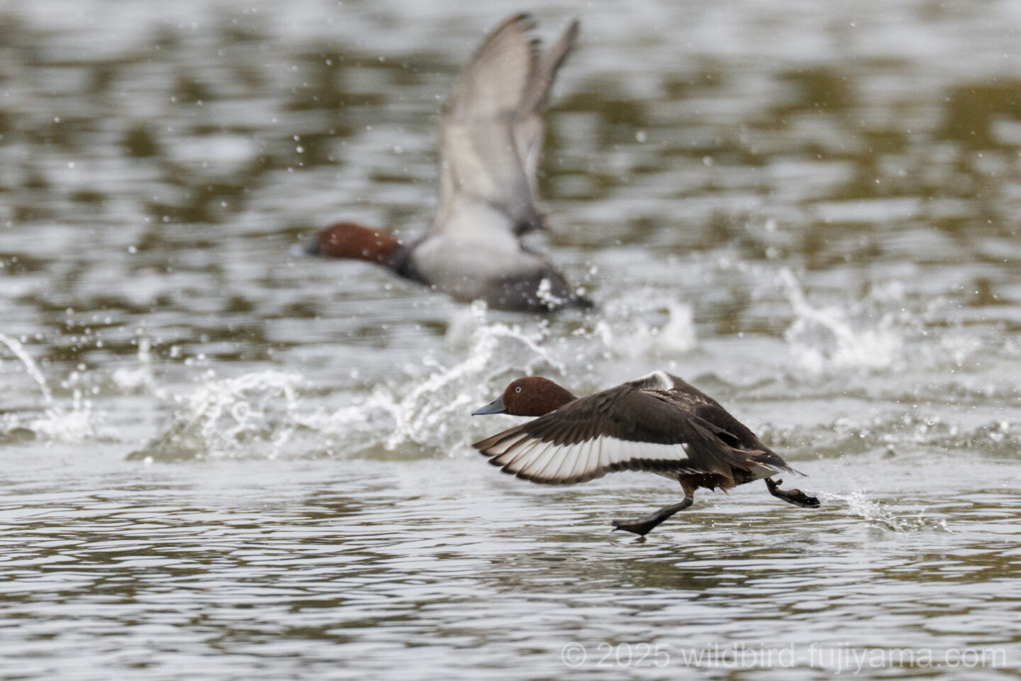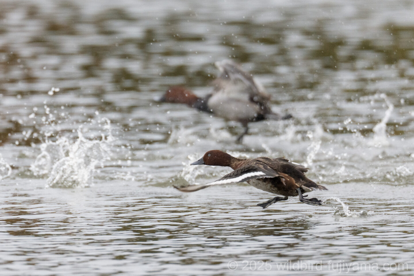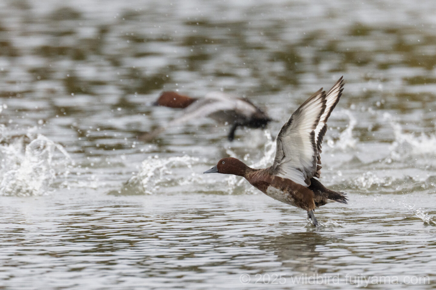 こんにちは。バードふじやまです。先日入ってすぐに抜けたメジロガモ♀が戻ってないか、ずっと気にしていたところ、今朝はメジロガモ♂1年目冬と思われる個体が入ってました。ところが撮影を始めてすぐに飛び出して行方不明に・・・。他には目の前に飛び出てきたジョウビタキ♀といつもの所に戻っていたハジロカイツブリを撮りました。