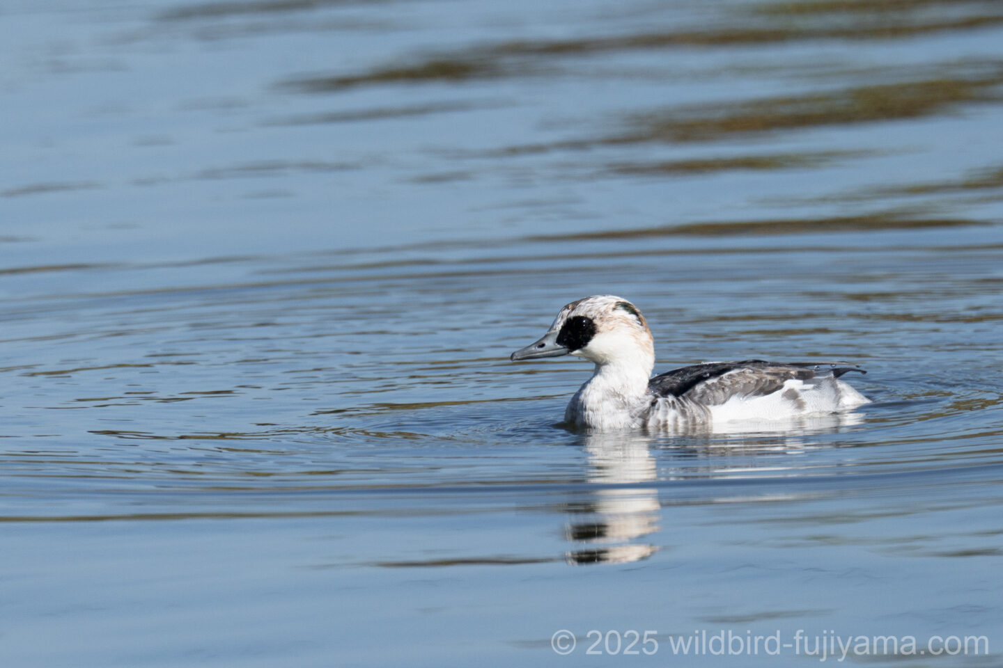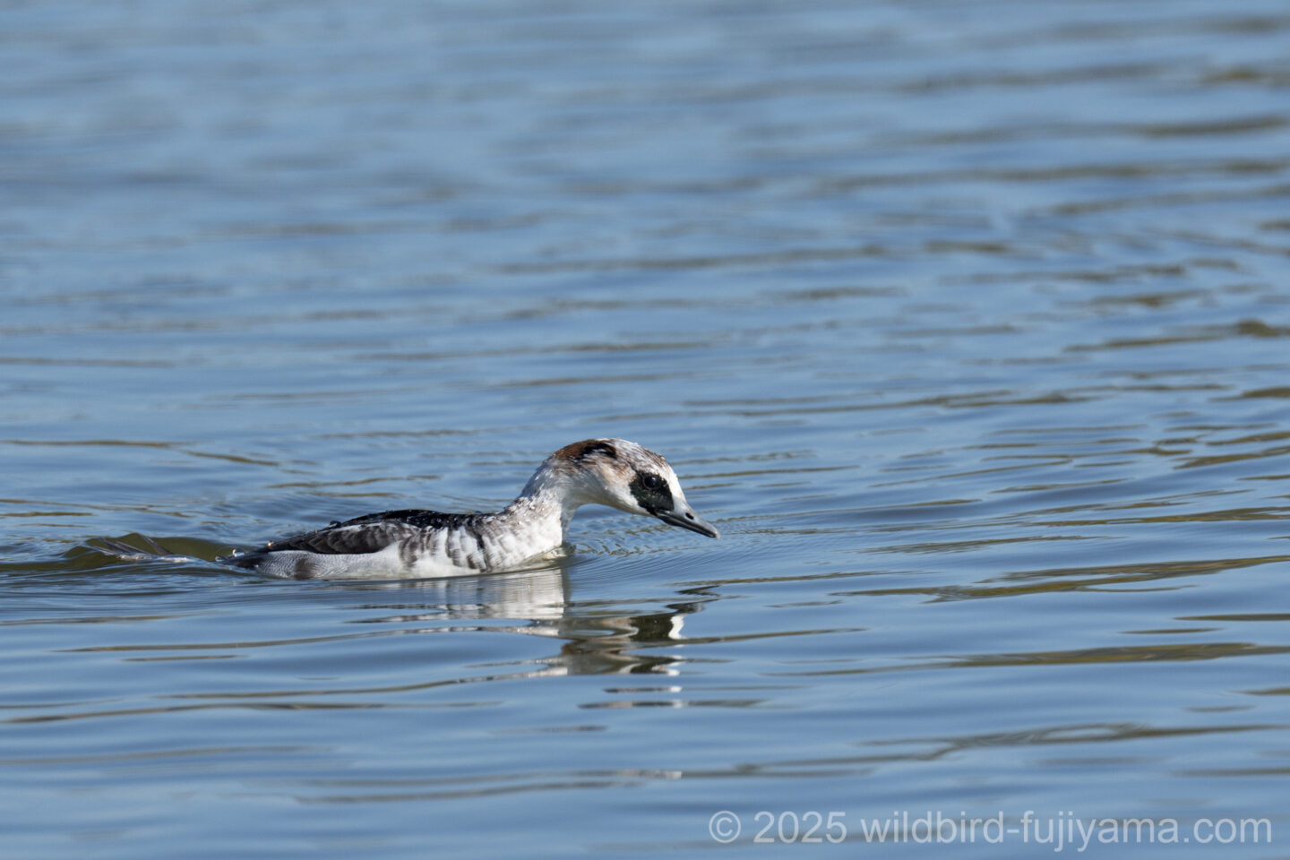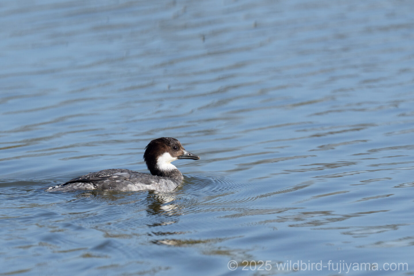こんにちは。バードふじやまです。今朝は濃霧の中を車で出動しました。現場は更に酷い濃霧で9時近くまで晴れなかった上に見事な空振りでした。このまま帰るのもあれなのでダメ元で立ち寄ったフィールドにミコアイサ♂エクリプス1羽と♀4羽がいました。また、オオタカとハトの群れの絡みも撮れたので最悪の坊主は免れました(笑)。