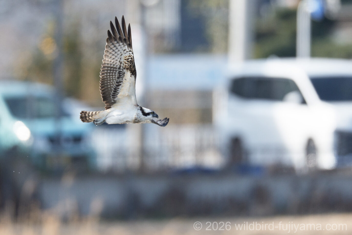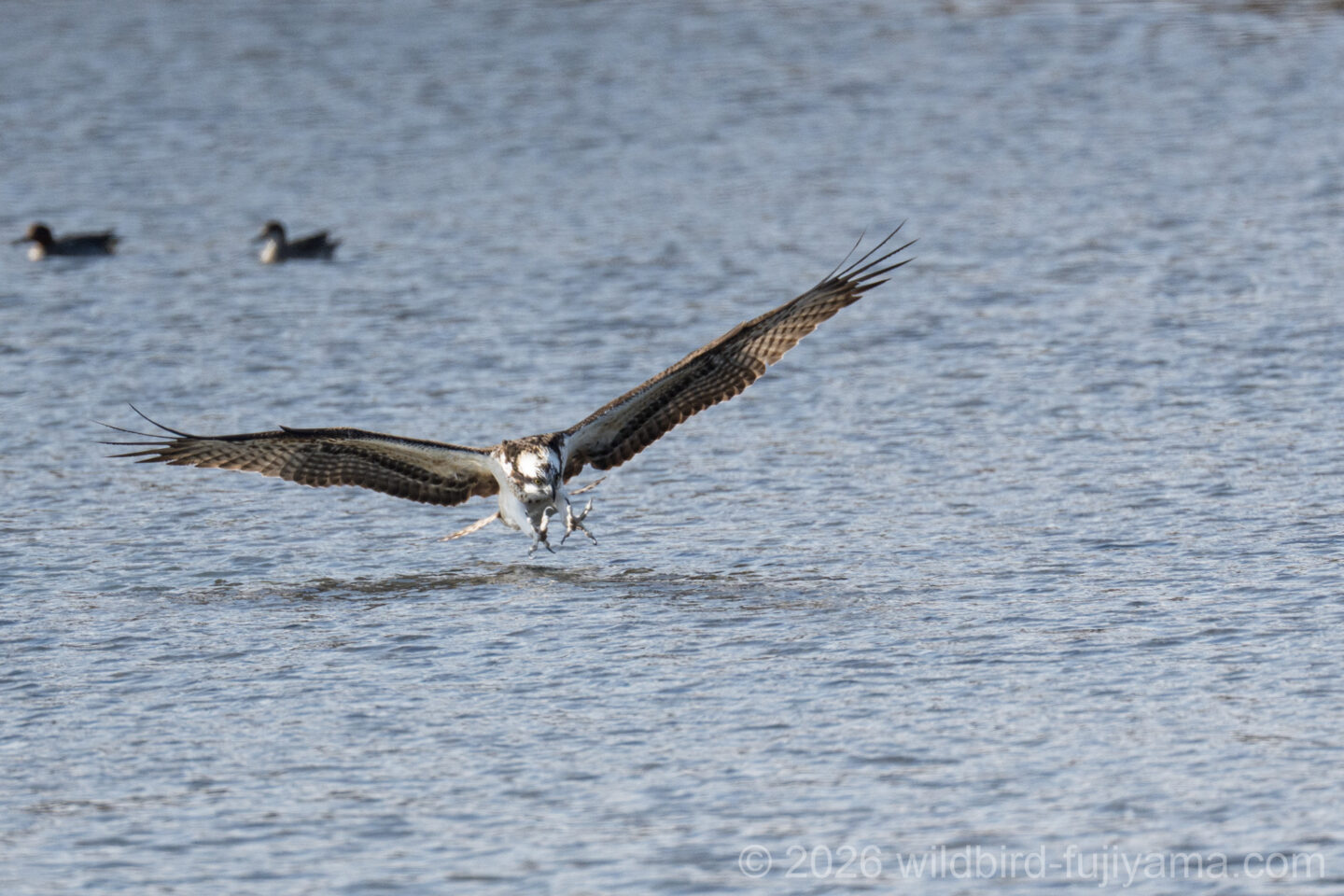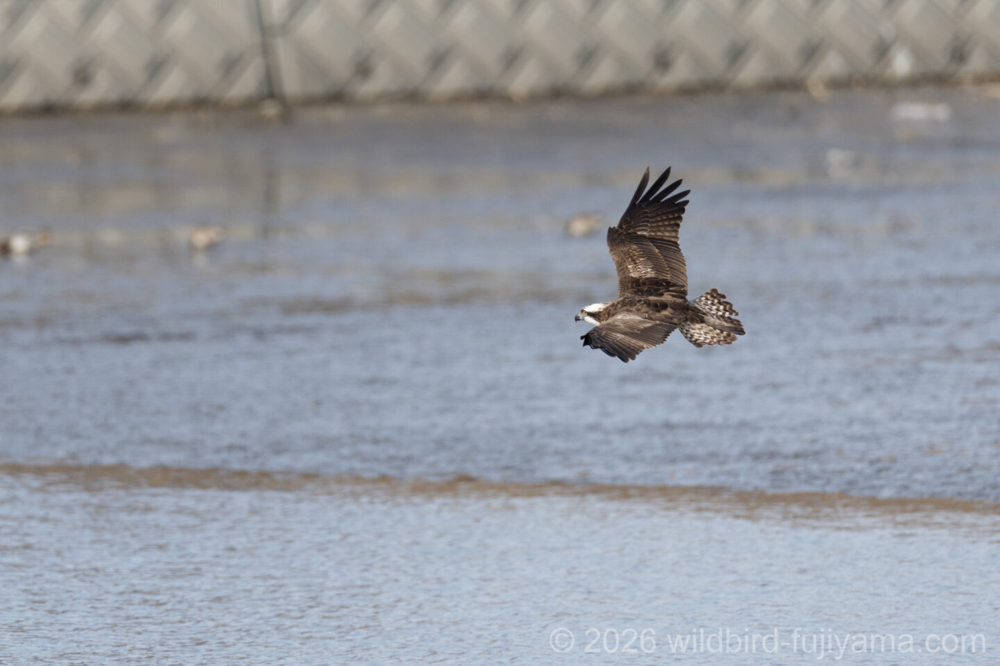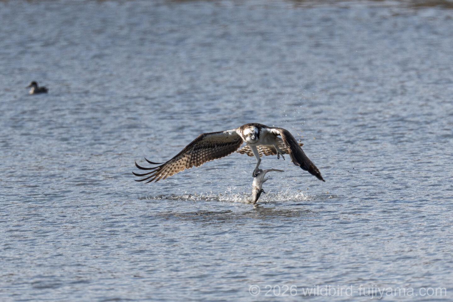 後からやってきて鮮やかに1発で仕留め飛び去るミサゴ。翼を広げたままの低速で体を水につけることもなく大物を仕留めるなんともクールなハンター。痺れます(笑)。