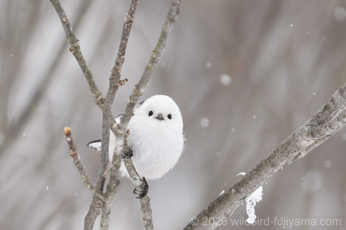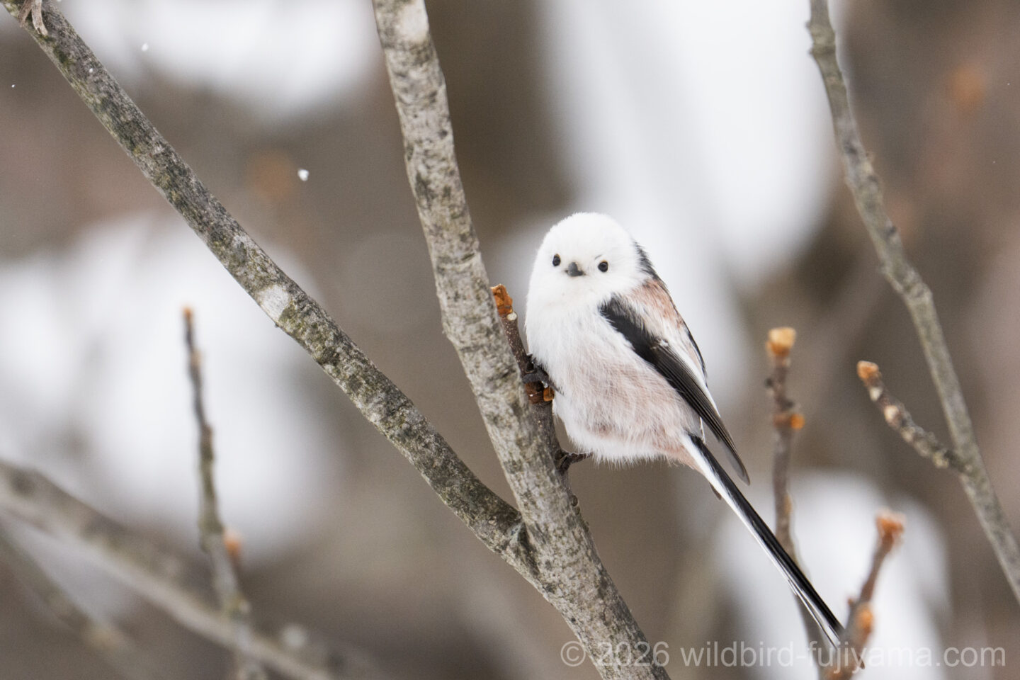 こんにちは。バードふじやまです。北海道遠征3日目の大トリは念願のシマエナガです。この場所は前日にユキホオジロを空振りした私が居なかった時間帯に出たというポイントなので期待して待つこと1時間半。ついに20羽ほどの群れがやってきました!初めて見る可愛さ爆発のシマエナガにテンション上がりっぱなしの14分間でした。