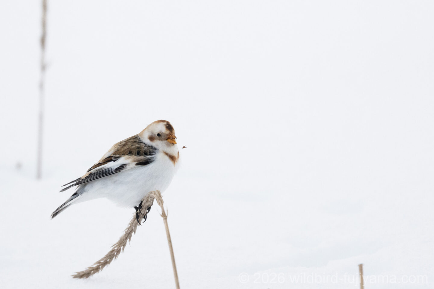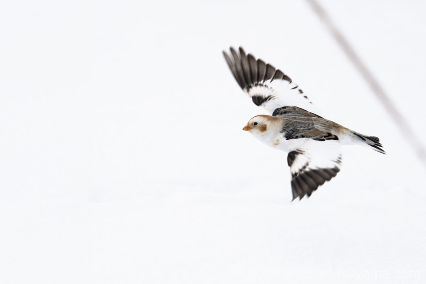 こんにちは。バードふじやまです。2日間終わって未だミッション未完了。尻に火が付いた勝負の3日目、朝からユキホオジロに向かい前日に足が棒になった道を歩くこと30分。ポイントの遥か手前で右前から飛んでくる群れ。「キタッ!!」思わず声が出ました(笑)。独り占め、撮り放題のあっという間の16分間でした。ここから怒涛のミッションコンプリートへの1日が始まりましたが、長くなるので続きは次回に・・・。なんだか講談の様な終わり方になりましたね(笑)。